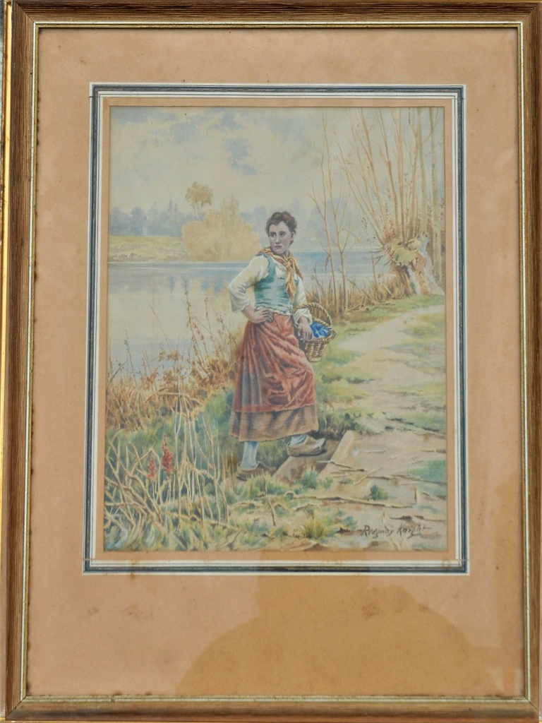 Obra: Country Girl Autor: Daniel Ridgway Knight Medidas: 49cm x 40cm Técnica de pintura: Acuarela |